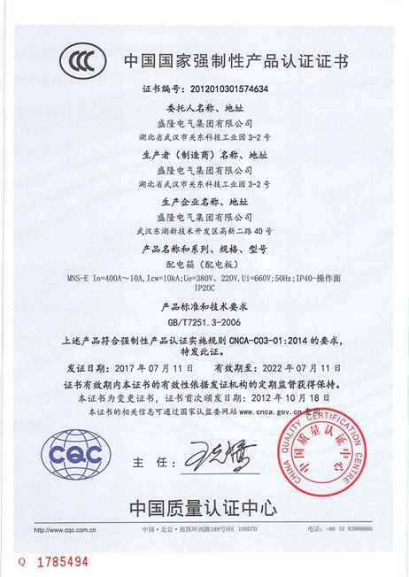 • 低壓成套CCC證書